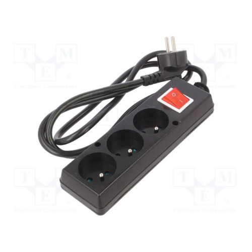 JONEX 5907570032323 | Мережевий подовжувач; 3x1,5мм2; Гнізда: 3; ПВХ; чорний; 1,5м; 16А