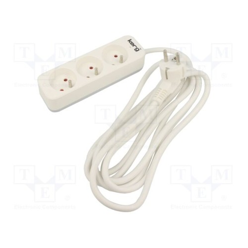 KERG M02388 | Мережевий подовжувач; 3x1,5мм2; Гнізда: 3; ПВХ; білий; 3м; 16А