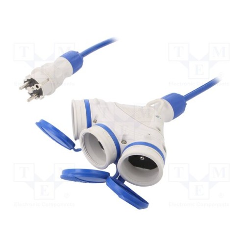 KEL W-01179 | Мережевий подовжувач; 3x1,5мм2; Гнізда: 3; PUR; синій; 5м; 16А