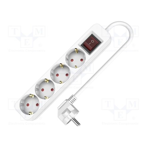 PLASTROL W-102100 | Мережевий подовжувач; 3x1,5мм2; Schuko; Гнізда: 4; ПВХ; білий; 1,5м