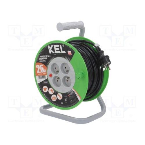 KEL W-97370 | Мережевий подовжувач; 3x1,5мм2; на котушці; Гнізда: 4; ПВХ; чорний