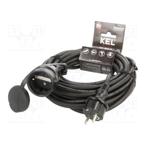 KEL W-97757 | Мережевий подовжувач; 3x1,5мм2; Гнізда: 1; гума; чорний; 10м; 16А