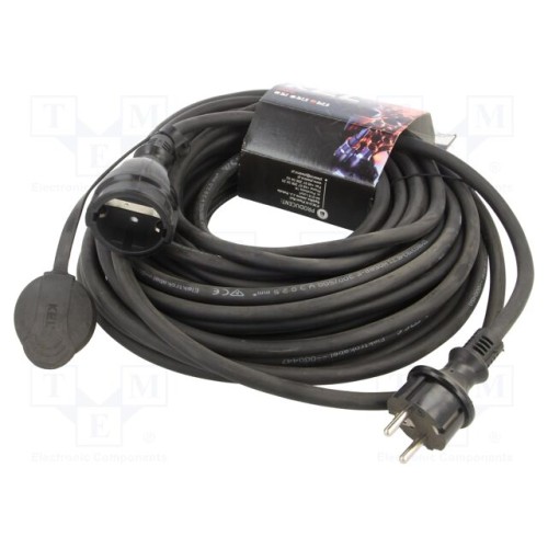 KEL W-98546 | Мережевий подовжувач; 3x2,5мм2; Гнізда: 1; гума; чорний; 20м; 16А