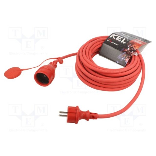 KEL W-98637 | Мережевий подовжувач; 3x1,5мм2; Гнізда: 1; гума; червоний; 10м; 16А