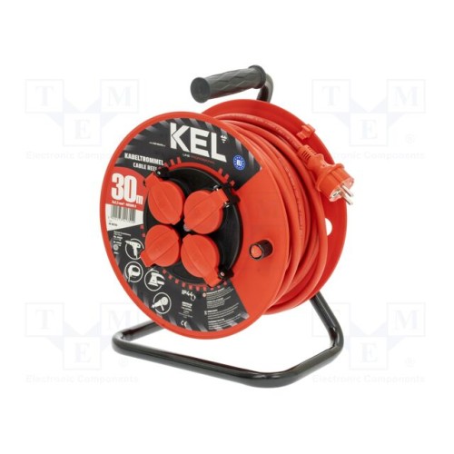 KEL W-98700 | Мережевий подовжувач; 3x2,5мм2; на котушці; Гнізда: 4; гума; 30м