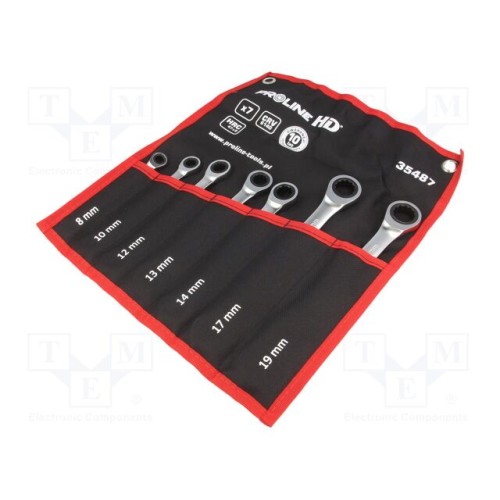 PROLINE 35487 | Ключ-комплект; тріскачка,комбінований; хромована сталь; 7шт.