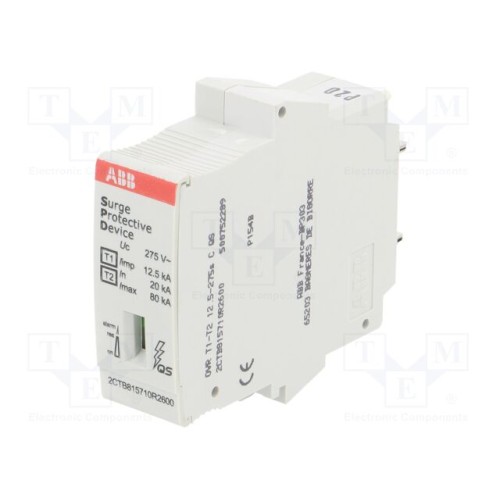 ABB OVR T1-T2 12.5-275S C QS | Вставник громовідвід; Тип 1+2; Полюси: 1; In 8/20мкс: 80кА; IP20