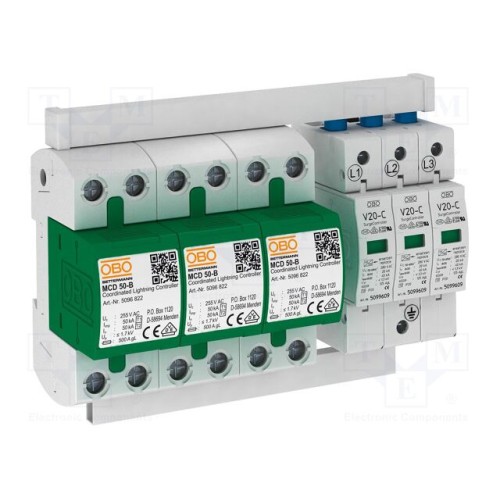 OBO BETTERMANN PS3-B+C TNC | Обмежувач перенапруження; Тип 1+2; Полюси: 3; 255ВAC; на шину DIN