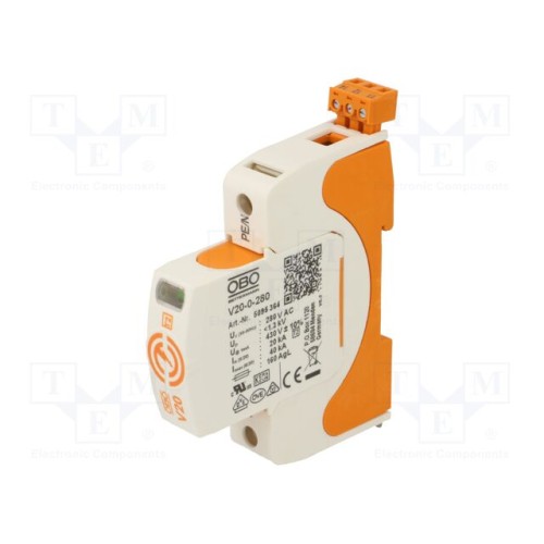 OBO BETTERMANN V20-1+FS-280 | Обмежувач перенапруження; Тип 2; Полюси: 1; 20кА; 280ВAC; -40÷80°C
