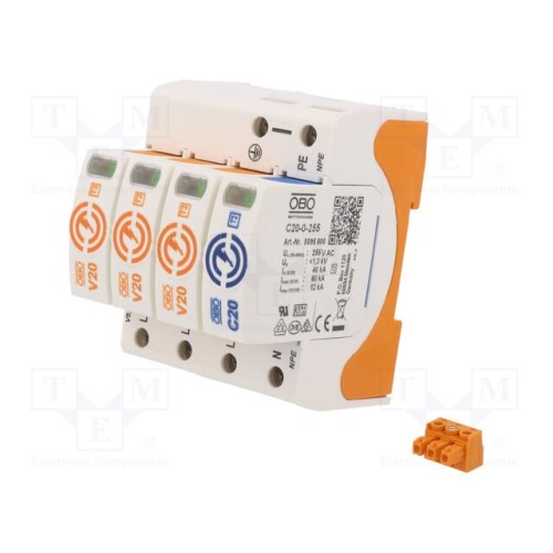 OBO BETTERMANN V20-3+NPE+FS-280 | Обмежувач перенапруження; Тип 2; Полюси: 3+NPE; 20кА; 280ВAC; IP20