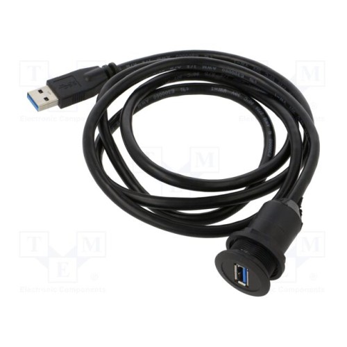 SCHLEGEL RRJ_USB3_SW_150 | Гніздо USB 3.0 A/A; Ø22,3мм; чорний; Кнопка: круглий; L: 1,5м