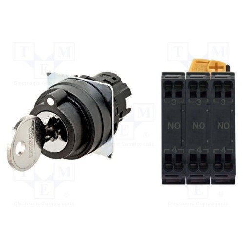 OMRON A22NK-3BM-01DA-P111 | Перемикач: поворотний з ключем; 22мм; Фікс.поз: 3; NO x3; чорний
