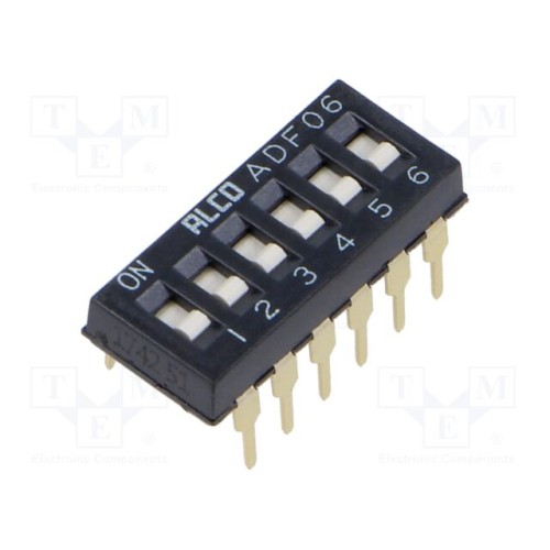 TE Connectivity 1825002-9 | Перемикач: DIP-SWITCH; Кількість секцій: 6; OFF-ON; -0,025A/24ВDC