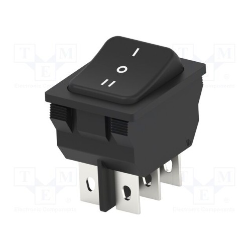 TE Connectivity 1-1634201-2 | ROCKER; SP3T; Поз: 3; ON-OFF-ON; 10A/250ВAC; чорний; немає; PR