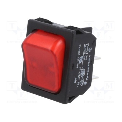 TE Connectivity 1634201-4 | ROCKER; DPST; Поз: 2; ON-OFF; 10A/250ВAC; чорний; лампочка; PRF