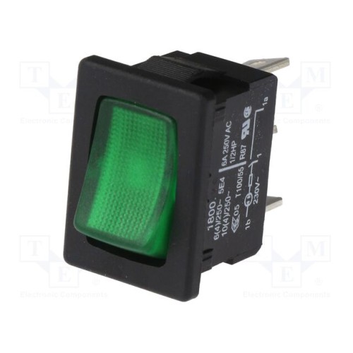 Marquardt 1800.1108 | ROCKER; SPST; Поз: 2; ON-OFF; 10A/250ВAC; зелений; IP40; лампочка