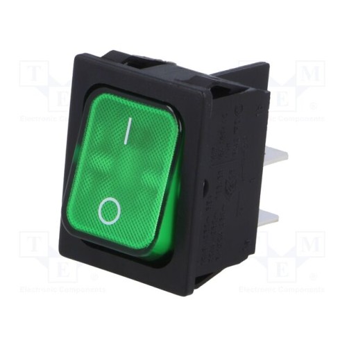 Marquardt 1835.3118 | ROCKER; DPST; Поз: 2; ON-OFF; 20A/250ВAC; зелений; IP40; лампочка