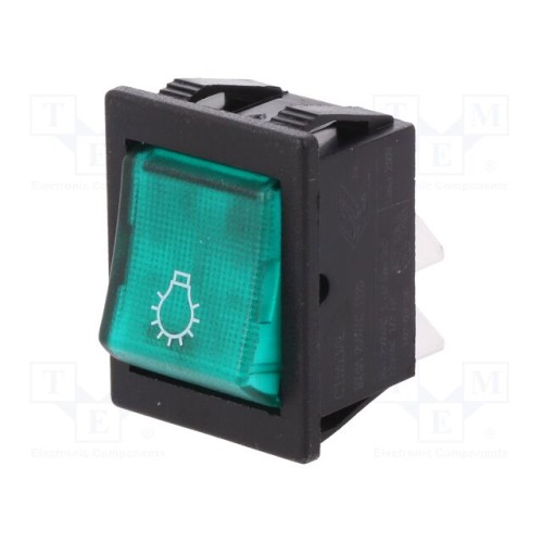 BULGIN C1553ALMBG31077W | ROCKER; DPST; Поз: 2; ON-OFF; 16A/250ВAC; зелений; неон.ламп; 1550