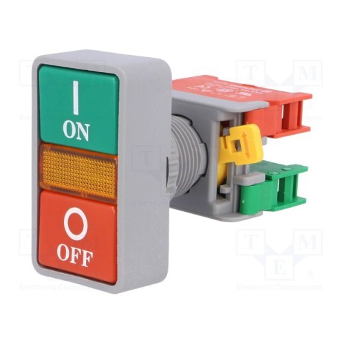 AUSPICIOUS DPB-22-1O/C | Перемикач: подвійний; 22мм; Фікс.поз: 1; NC + NO; червоний/зелений