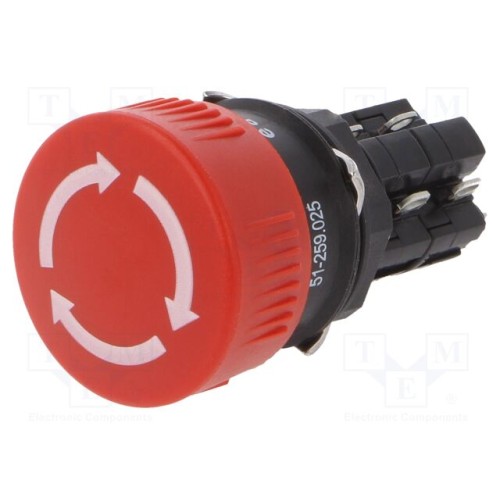 EAO 51-259.025 | Перемикач: безпеки; 16мм; Фікс.поз: 2; NC x2 + NO x2; червоний