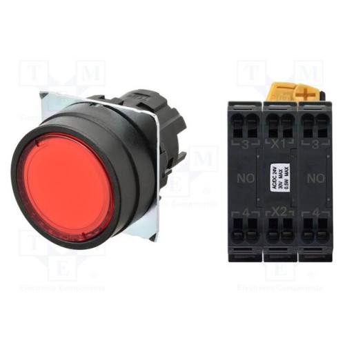OMRON A22NL-BNM-TRA-P101-RC | Перемикач: кнопковий; 22мм; Фікс.поз: 1; NO x2; червоний; LED; IP66