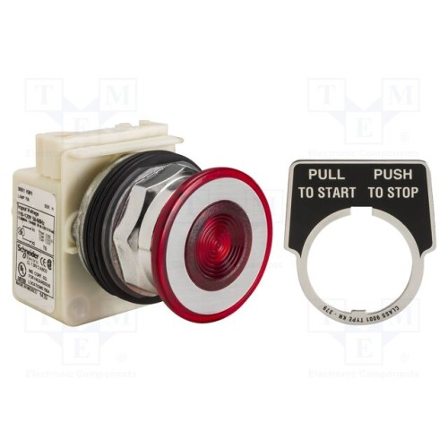 SCHNEIDER ELECTRIC 9001KR9P1R | Перемикач: кнопковий; 30мм; Фікс.поз: 2; червоний; LED; IP66; 9001K