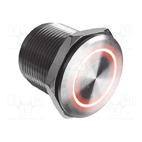 BULGIN MPZI022/F/RD/24 | SPST-NO; 1A/24ВAC; IP68; OFF-(ON); 22x22мм; Кнопка: круглий