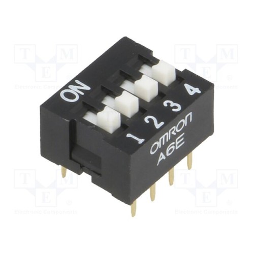 OMRON Electronic Components A6E-4104-N | Перемикач: DIP-SWITCH; Кількість секцій: 4; ON-OFF; 0,025A/24ВDC