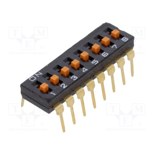 OMRON Electronic Components A6T-8104 | Перемикач: DIP-SWITCH; Кількість секцій: 8; ON-OFF; 0,025A/24ВDC