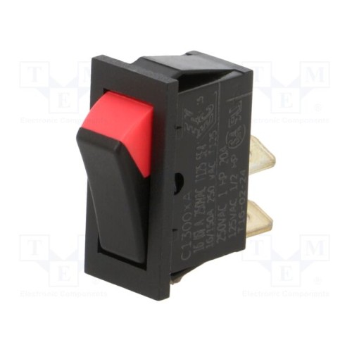 BULGIN C1300XAAAA | ROCKER; SPST; Поз: 2; ON-OFF; 16A/250ВAC; чорно-червоний; немає