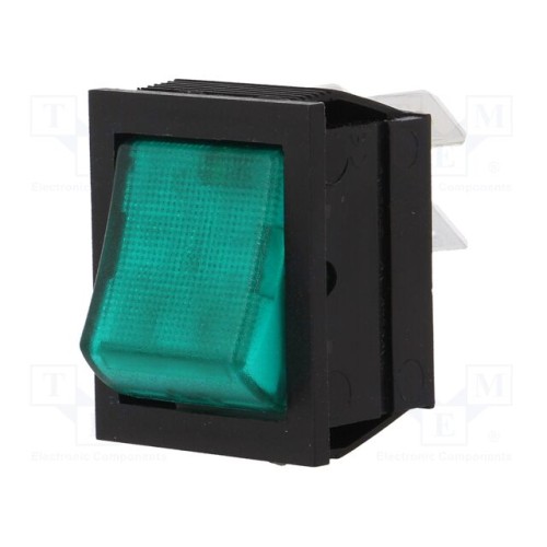 BULGIN C1353AAMBG3 | ROCKER; DPST; Поз: 2; ON-OFF; 16A/250ВAC; зелений; неон.ламп; 1350