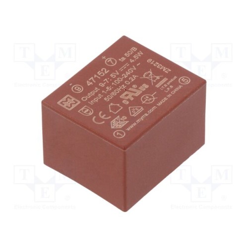 MYRRA 47152 | Перетворювач: AC/DC; 4,5Вт; Uвх: 85÷265ВAC,120÷370ВDC; Uвих: 5ВDC