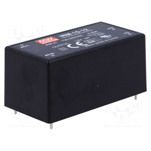 MEAN WELL IRM-15-12 | Перетворювач: AC/DC; 15Вт; Uвх: 85÷264ВAC,120÷370ВDC; Uвих: 12ВDC