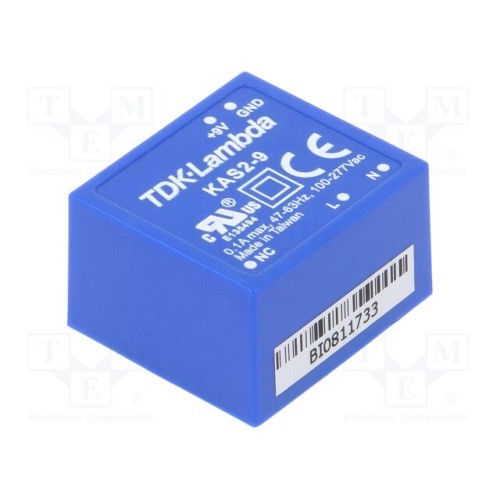 TDK-LAMBDA KAS2-9 | Перетворювач: AC/DC; 2Вт; Uвх: 90÷305ВAC,120÷430ВDC; Uвих: 9ВDC
