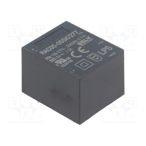RECOM RAC05-05SK/277 | Перетворювач: AC/DC; 5Вт; Uвх: 85÷305ВAC,120÷430ВDC; Uвих: 5ВDC