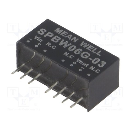MEAN WELL SPBW06G-03 | Перетворювач: DC/DC; 6Вт; Uвх: 18÷75ВDC; Uвих: 3,3ВDC; SIP8; THT