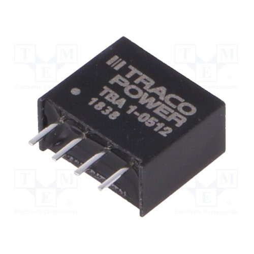 TRACO POWER TBA 1-0512 | Перетворювач: DC/DC; 1Вт; Uвх: 4,5÷5,5ВDC; Uвих: 12ВDC; Iвих: 80мА