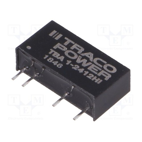 TRACO POWER TBA 1-2412HI | Перетворювач: DC/DC; 1Вт; Uвх: 21,6÷26,4ВDC; Uвих: 12ВDC; Iвих: 84мА