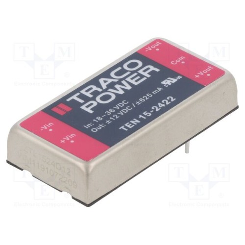 TRACO POWER TEN 15-2422 | Перетворювач: DC/DC; 15Вт; Uвх: 18÷36ВDC; Uвих: 12ВDC; Iвих: 625мА
