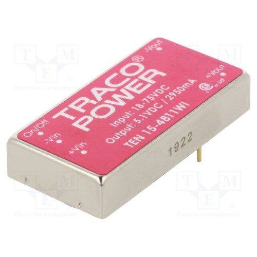 TRACO POWER TEN 15-4811WI | Перетворювач: DC/DC; 15Вт; Uвх: 18÷75ВDC; Uвих: 5,1ВDC; Iвих: 2950мА