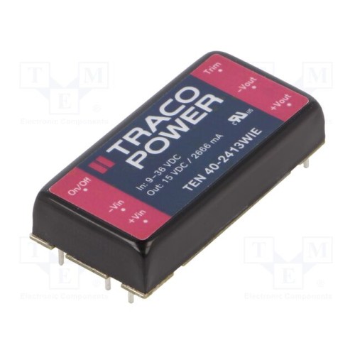 TRACO POWER TEN 40-2413WIE | Перетворювач: DC/DC; 40Вт; Uвх: 9÷36ВDC; Uвих: 15ВDC; Iвих: 2666мА