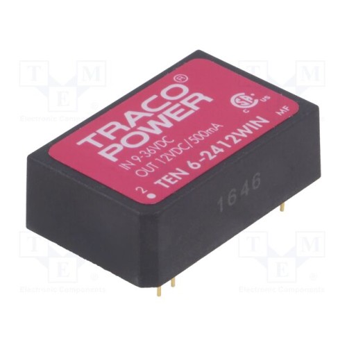 TRACO POWER TEN 6-2412WIN | Перетворювач: DC/DC; 6Вт; Uвх: 9÷36ВDC; Uвих: 12ВDC; Iвих: 500мА