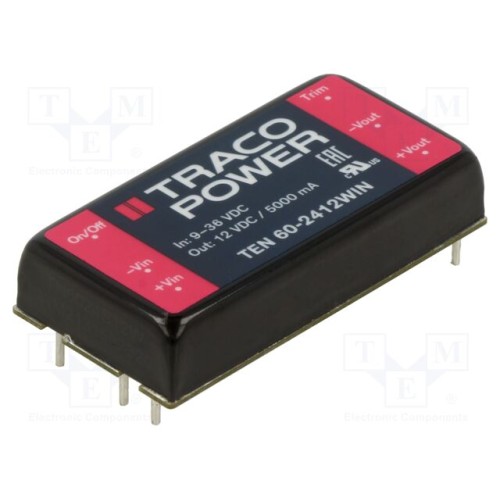 TRACO POWER TEN 60-2412WIN | Перетворювач: DC/DC; 60Вт; Uвх: 9÷36ВDC; Uвих: 12ВDC; Iвих: 5000мА
