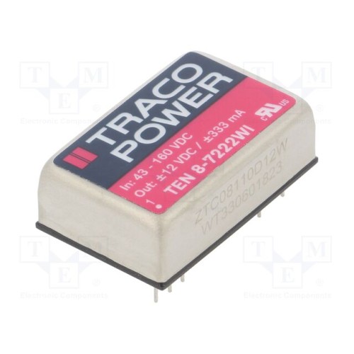 TRACO POWER TEN 8-7222WI | Перетворювач: DC/DC; 8Вт; Uвх: 43÷160ВDC; Uвих: 12ВDC; Iвих: 333мА
