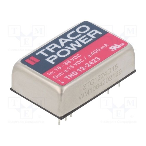 TRACO POWER THD 12-2423 | Перетворювач: DC/DC; 12Вт; Uвх: 18÷36ВDC; Uвих: 15ВDC; Iвих: 400мА
