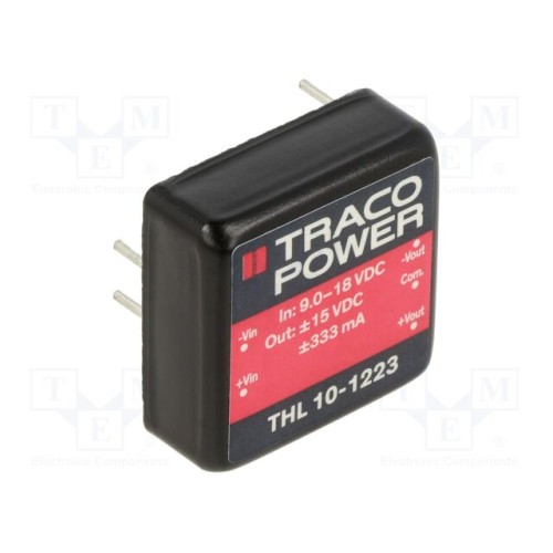 TRACO POWER THL 10-1223 | Перетворювач: DC/DC; 10Вт; Uвх: 9÷18ВDC; Uвих: 15ВDC; Uвих.2: -15ВDC