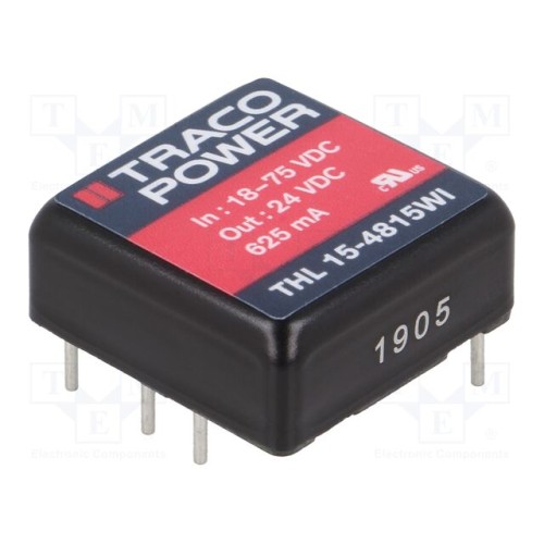 TRACO POWER THL 15-4815WI | Перетворювач: DC/DC; 15Вт; Uвх: 18÷75ВDC; Uвих: 24ВDC; Iвих: 625мА