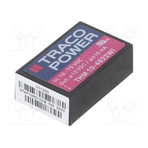 TRACO POWER THM 10-4822WI | Перетворювач: DC/DC; 10Вт; Uвх: 18÷75ВDC; Uвих: 12ВDC; Iвих: 416мА