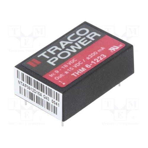 TRACO POWER THM 3-1223 | Перетворювач: DC/DC; 3Вт; Uвх: 9÷18ВDC; Uвих: 15ВDC; Uвих.2: -15ВDC