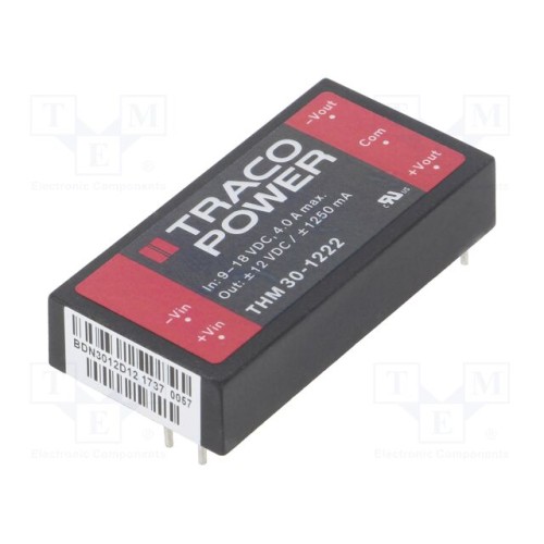 TRACO POWER THM 30-1222 | Перетворювач: DC/DC; 30Вт; Uвх: 9÷18ВDC; Uвих: 12ВDC; Uвих.2: -12ВDC
